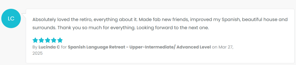 This weekend will reignite your enthusiasm for Spanish by showing real progress in just a few days, surrounded by like-minded people, laughter, meals, and real conversations, forming connections that keep you motivated long after the weekend ends and leave you with a little Spanish community that feels like home.